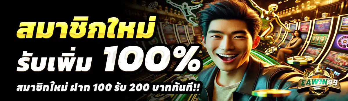 - โบนัสต้อนรับสมาชิกใหม่ 100%: ฝาก 100 รับ 200 ทำเทิร์นน้อย ถอนได้จริง